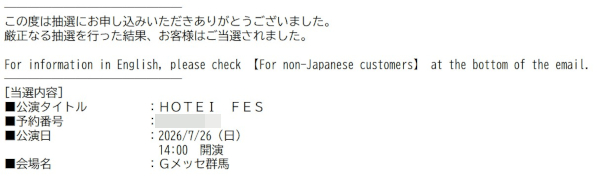 他の出演アーティストの先行予約の当落発表がどうだったのかも気になるところです。